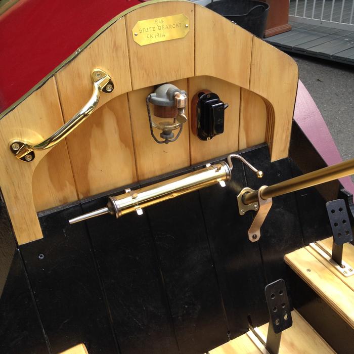 This one started out as two old MG badges and a spare Morrie eight grill I had lying around. Two achieve some resemblance to the original it needed to have the steering wheel on the right side giving the appearance of a two seater.