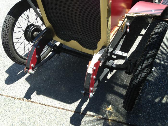 The neighbor was extremely gracious about the whole thing and even towed me home. When building the Stutz I made sure all important nuts had a split pin through them. What had occurred her was the bolt that holds the steering shaft into the steering box universal came out, so the steering shaft came out of its housing. Tough lesson learnt. Double check everything. Brian S.
