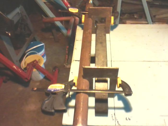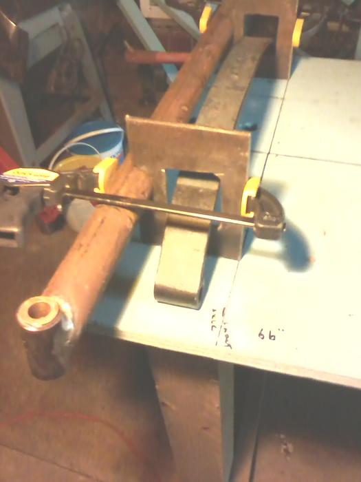 I cut the roughs for the transverse spring mounts and got them drilled for radius rods. The plates have an opening that allows the spring to go through them, hopefully making the entire assembly more compact. I'm hoping also that this design will help should the spring break, maybe holding everything somewhat together until the Kart could be stopped. Couldn't do any welding today because of the wet barn floor. I kinda don't like standing in water when I'm SMAW welding. Anyways I mocked it up kinda for an idea of how it will look.