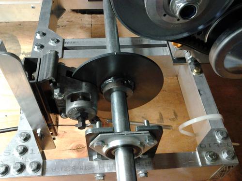 Disk brake installation. My caliper is swapped around so pull activates it. I use a Manco brake cable. lighter than a1/4 steel pushrod.