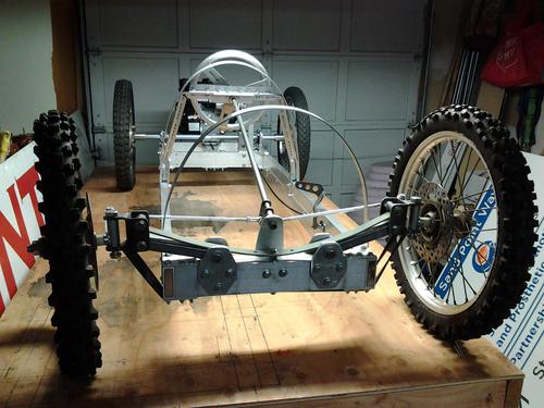 Completed front suspension. Yes, the spring is assisted by bungee cords but they are gone, replaced by another leaf