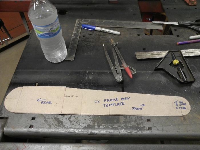 I remembered a trick a late friend of mine (Ron would've loved CK's) did making hot rods, tag board templates. Taking an empty cereal box I layed out the frame profile, remember to account for the thickness of the frame rail.