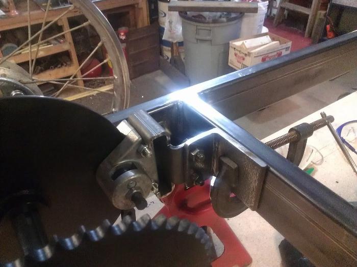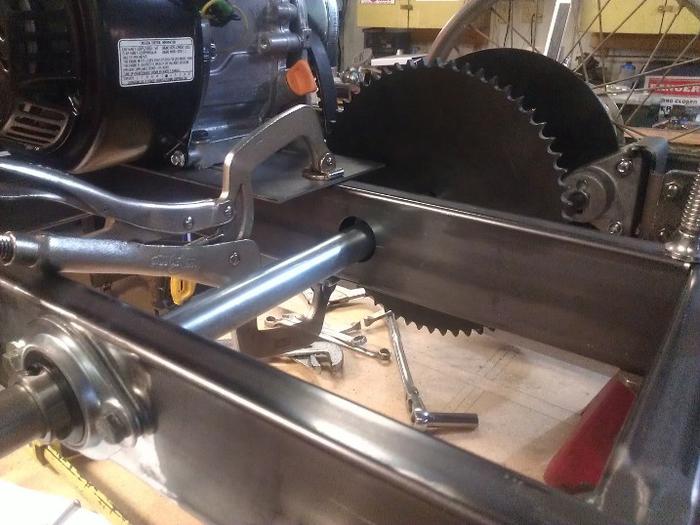 Welded the cross bracing in the rear, the brake mount and the motor plate.
