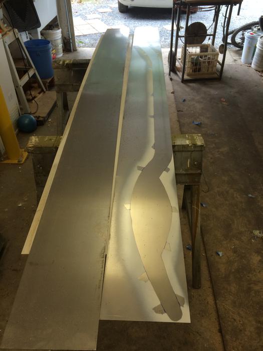 Welding of the frame rails in the MDF jig. a LVL plank was leveled on the work bench and then the jig was built up on it. Using a wood jig for welding is not a good idea and it did catch on fire.