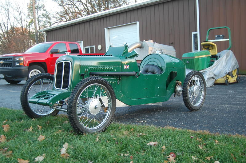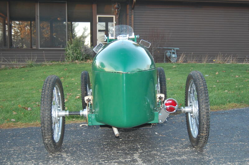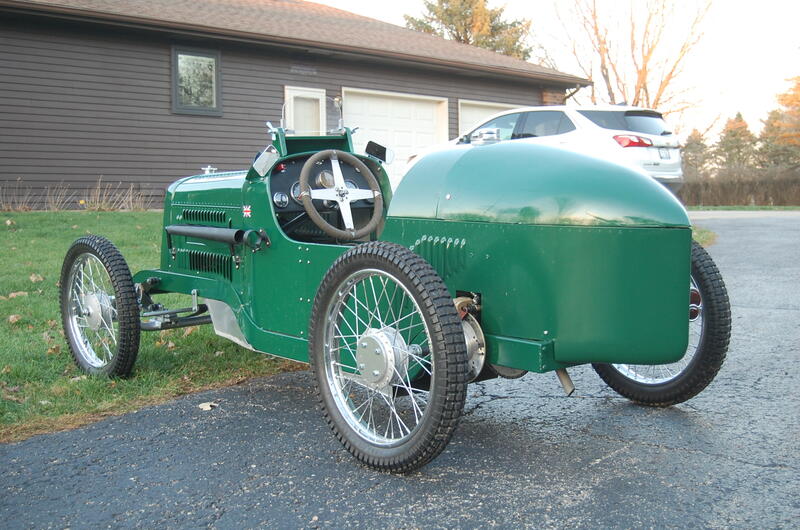 This car was inspired by a 1929 Riley 9 Brooklands Monoposto GP Voiturette started by Bob Gerard.